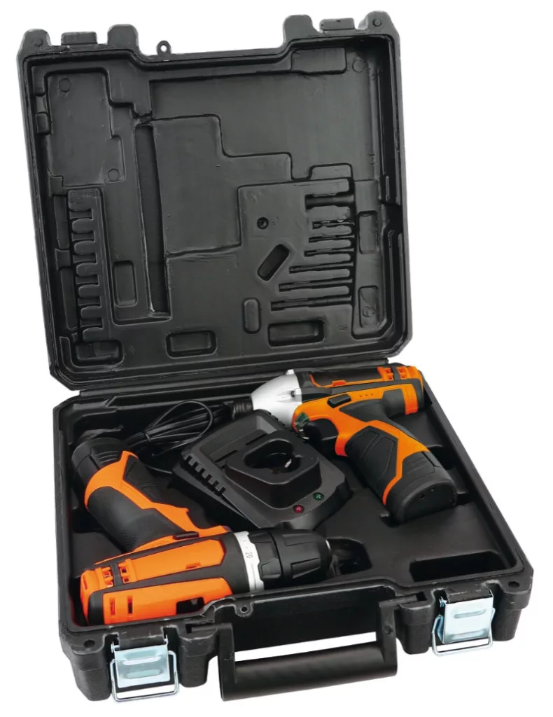 A táska tartalma: • 1 12V ultrakompakt fúró, 10 mm önzáró tokmánnyal • 1 12V irányváltós ütvecsavarbehajtó, 1/4” hatlapfejű csatlakozóval • 2 2Ah lítiumion akkumulátor • 1 akkumulátor gyorstöltő