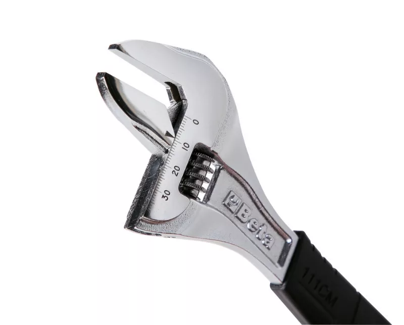 Extra szélesre nyitható pofák Kompakt méret A Beta 111CM új, széles nyílású állítható villáskulcsa fokozatmentesen állítható, így a befogó pofák különböző méretű csavarokhoz méretezhetők.
