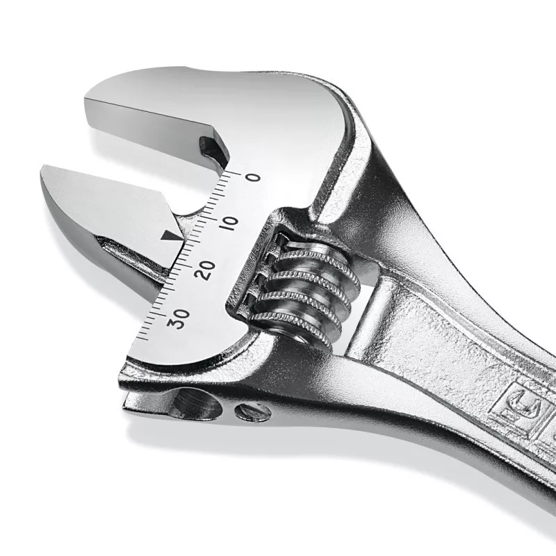Könnyű Kompakt Ergonomikus Állítható villáskulcs skálával, krómozott A Beta 111E új, állítható, mérőskálával ellátott villáskulcs fokozatmentesen állítható, így a befogó pofák különböző méretű csavarokhoz méretezhetők.