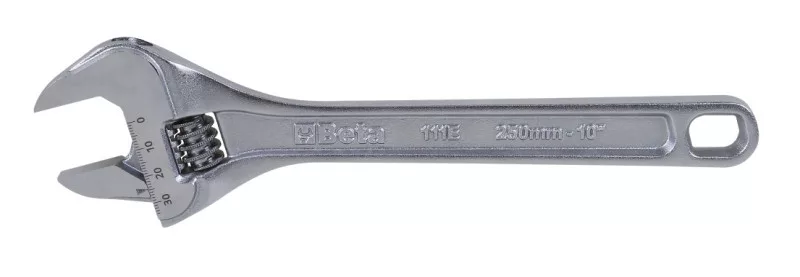 A 111E állítható, mérőskálával ellátott villáskulcs fokozatmentesen állítható, így a befogó pofák különböző méretű csavarokhoz méretezhetők.