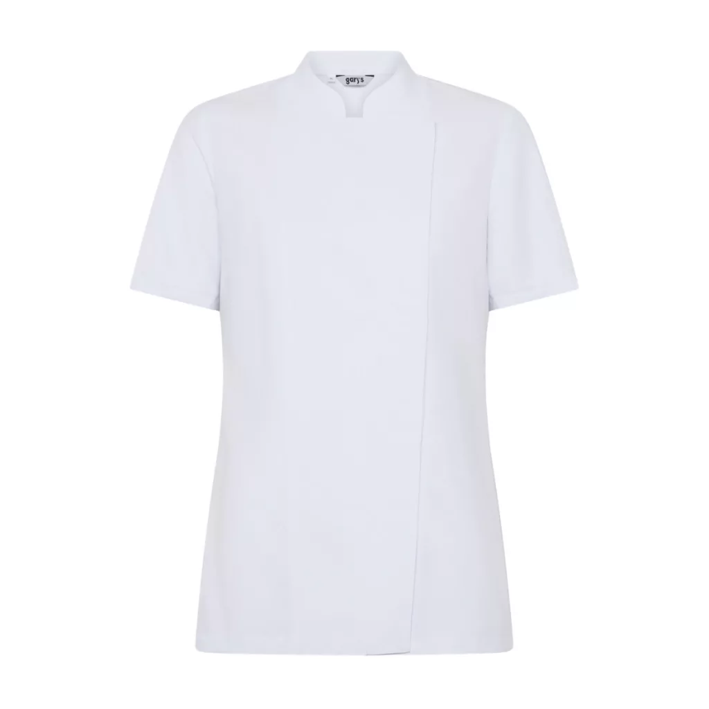 A GARYS PAZ női rövidujjú séfkabát mao gallérral, átlapolt fazonnal és rejtett patentos záródással készül, a karcsúsított szabás és a mellvarrások pedig csinos, kényelmes illeszkedést adnak a konyhai munkákhoz.