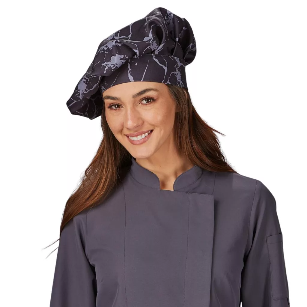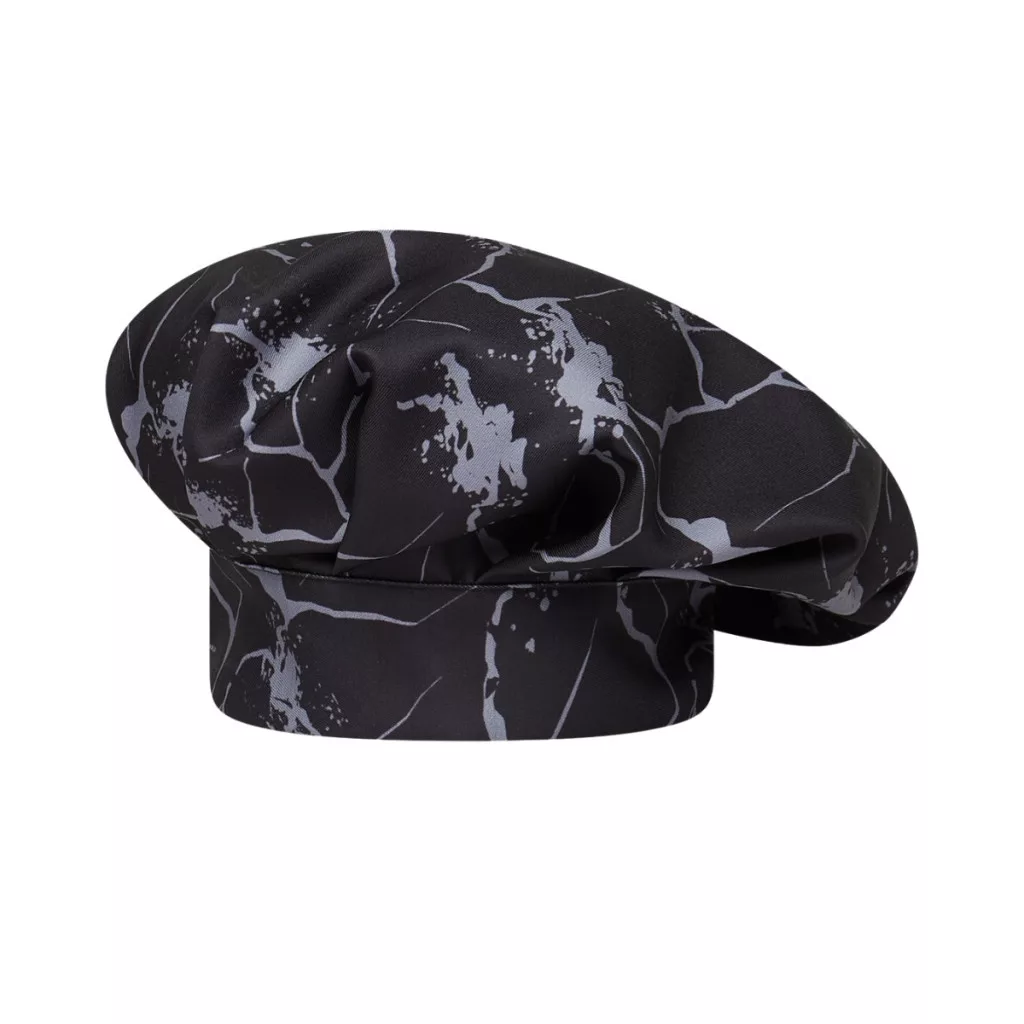 A Gran Chef tépőzáras mintás séfsapka unisex, egy méretű kivitelben készül tépőzáras állítással, így a körméret 54–60 cm között gyorsan személyre szabható, a szublimált minta pedig tartósan élénk, éles megjelenést ad intenzív konyhai használat mellett is.