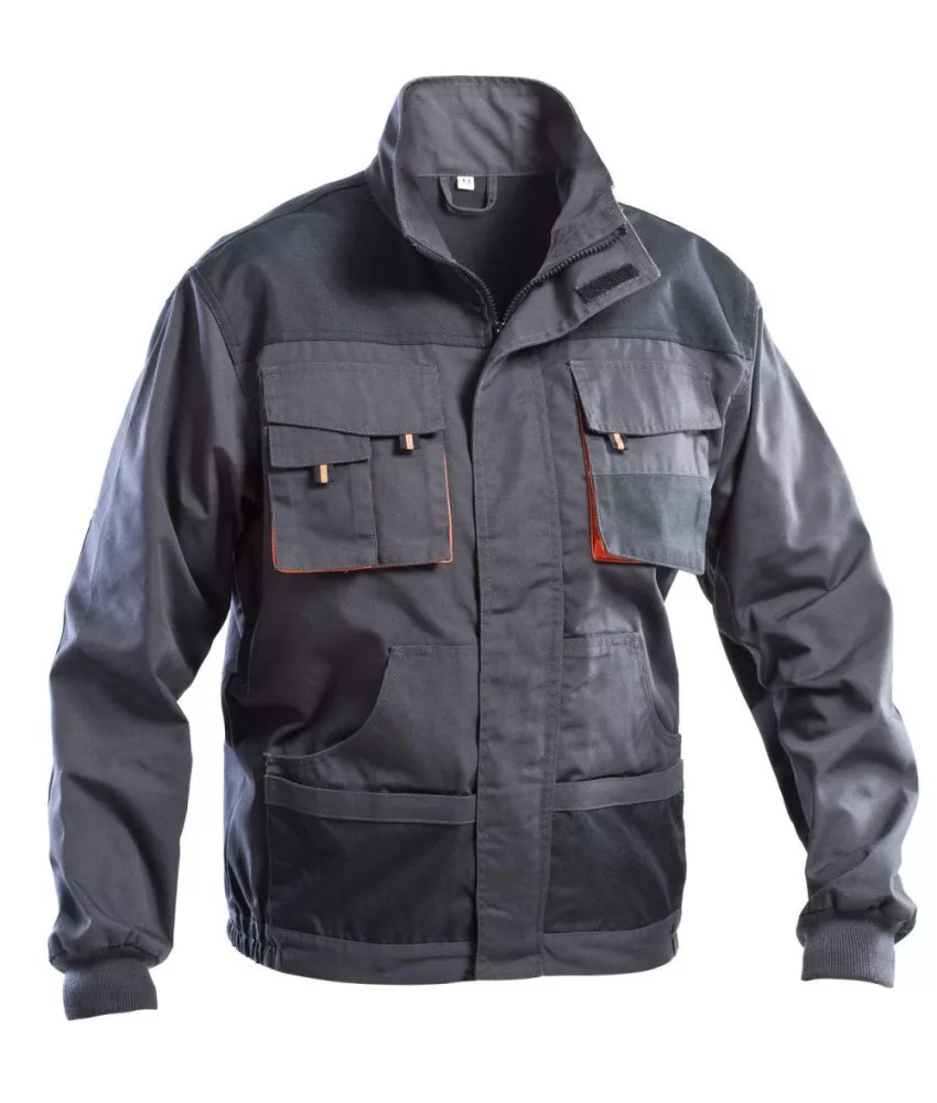 65% poliészterből, 35% pamutól készűlt kabát. 270gr/m2.Megerősített zsebek- váll- könyök résszekkell, tépőzáras gallérral, két első telefontartó- két alsó tépőzáras zsebbel, gumis mandzsettával és derékrésszel. Erőfeszítés pontokon dupla varrattal rendelkezik. UNI EN ISO 13688:2013 CE