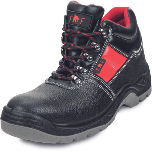 • biztonsági bakancs acél lábujjvédővel, átszúrás elleni köztalppal • olajálló PU/PU talp, bőr felsőrész • ezüst színű fényvisszavető elemek
