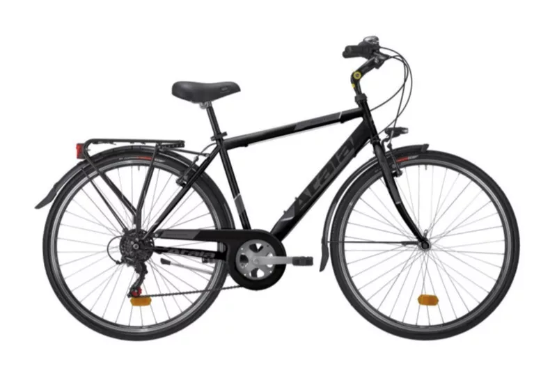• Hi-Ten Tig TKK 700c váz • Shimano® RD-TZ50 hátsó váltó, 6 sebességes • V-Brake® fék • 28" alumínium kerekek, dupla cső • Elemes lámpa • Fém sárvédő és láncvédő ?• Tartozékok: csomagtartó, kitámasztó és csengő • Szín: matt fekete