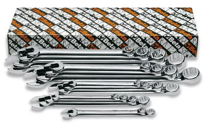 18 részes hosszú csillag-villáskulcs szerszám készlet 42LMP 8-9-10-11-12-13-14-15-16-17-18-19-21-22-24-27-30-32 mm