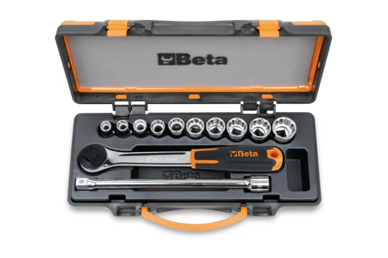 920AS/C10 10 tizenkétszögű Dugókulcs és 2 tartozék fémdobozban