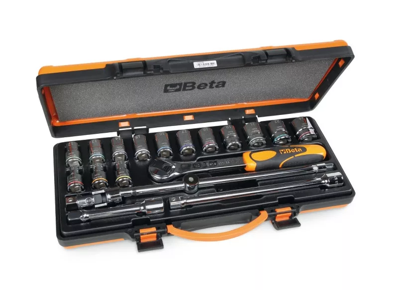 14 színezett hatszögű Dugókulcs és 5 tartozék, fémdobozban
