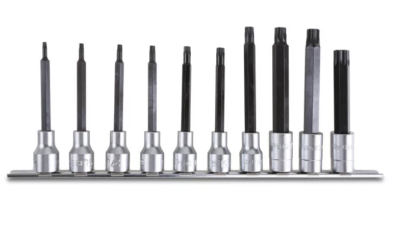 10 darabból álló hosszú hatszögű külső Dugókulcs készlet (920TX/L cikk.) Torx® csavarokhoz tartóban ?T20L-T25L-T27L-T30L-T40L- T45L-T50L-T55L-T60L-T70L