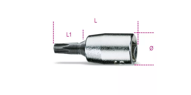 40 mm 1/4"-os Torx®-imbusz Dugókulcs, krómozott, fekete hegyek