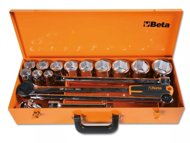 12 hatlapú Dugókulcs és 5 tartozék, fémdobozban 928AS:   Hatlapú Dugókulcs 1/4"-7/8-15/16-1.1/16-1.1/8-1.1/4-1.5/16-1.7/16-1.1/2-1.11/16-1.13/16-1.7/8-2.1/16 928/21: 3/4" - os toldó 200 mm 928/22: 3/4" - os toldó 380 mm 928/25 928/42: 3/4" - os csúszkás T - hajtószár 928/55:3/4" - os irányváltós racsni