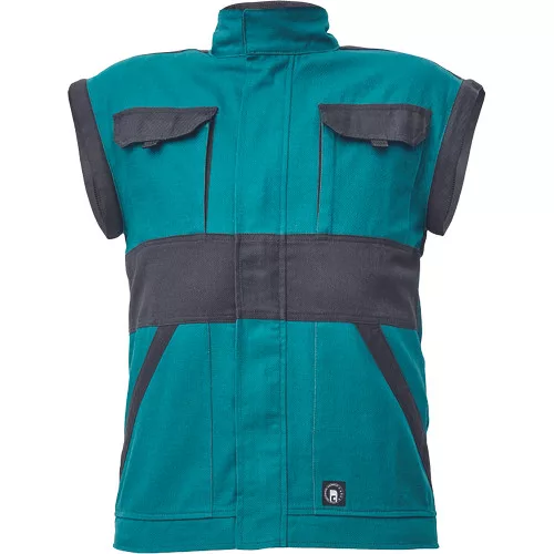 • férfi cipzáras munkakabát levehető újakkal • 2 első zseb • 2 mellzseb • megerősítés a váll és könyök részeken • rugalmas mandzsetta és alsó derékszegély • fényvisszavető csíkok az ujjakon és a kabát hátán, anyag: 100% pamut, anyagvastagság: 260 g/m2