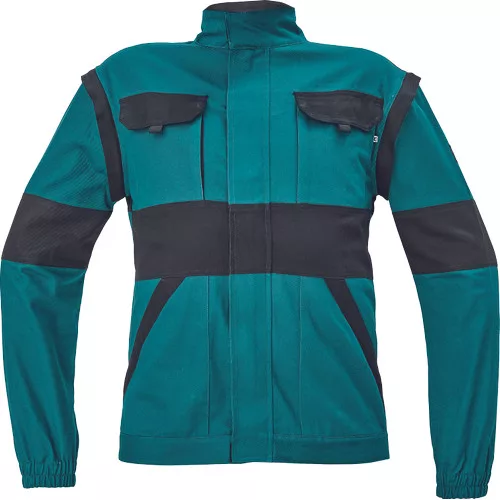 • férfi cipzáras munkakabát levehető ujjakkal • 2 oldalzseb, 2 mellzseb • megerősítés a váll- és könyökrészeken • rugalmas mandzsetta és derékpánt • anyag: 100% pamut, anyagvastagság: 260 g/m2