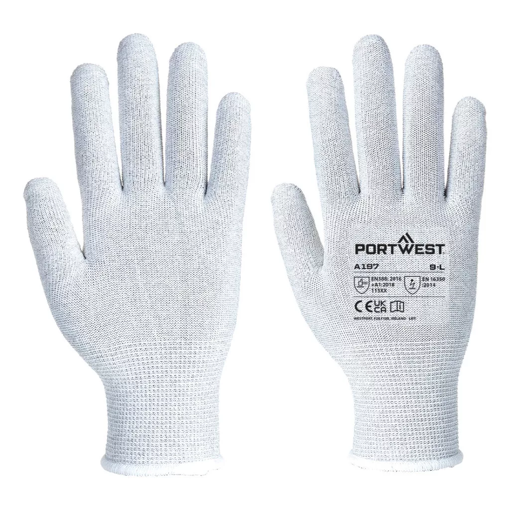 Speciális poliészter és szénszál keverékből készült. Ez a kesztyű megvédi az elektronikai berendezéseket, például az áramköri lapokat a bőr természetes olajától, miközben az érzékeny berendezéseket a káros statikus kisüléstől is megvédi.