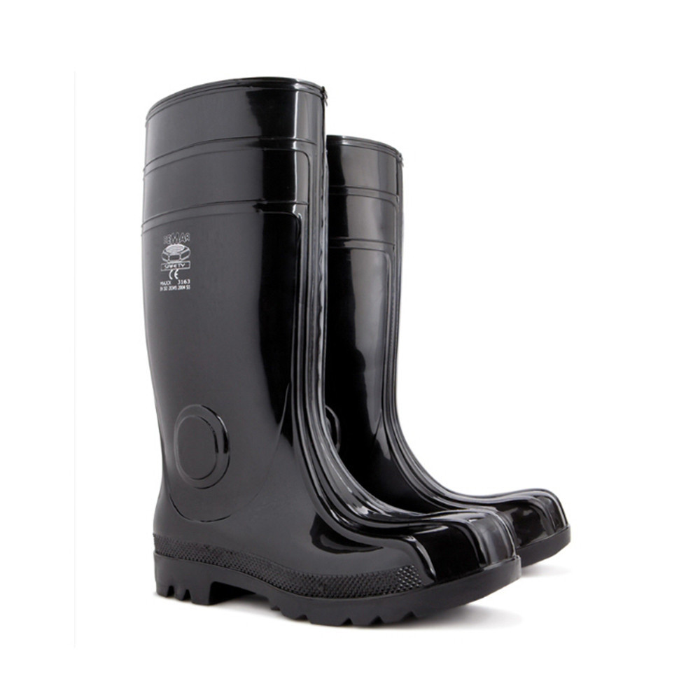 Hosszú szárú PVC csizma fekete színben, kivehető filc talpbetéttel és minősített csúszásmentes talppal.