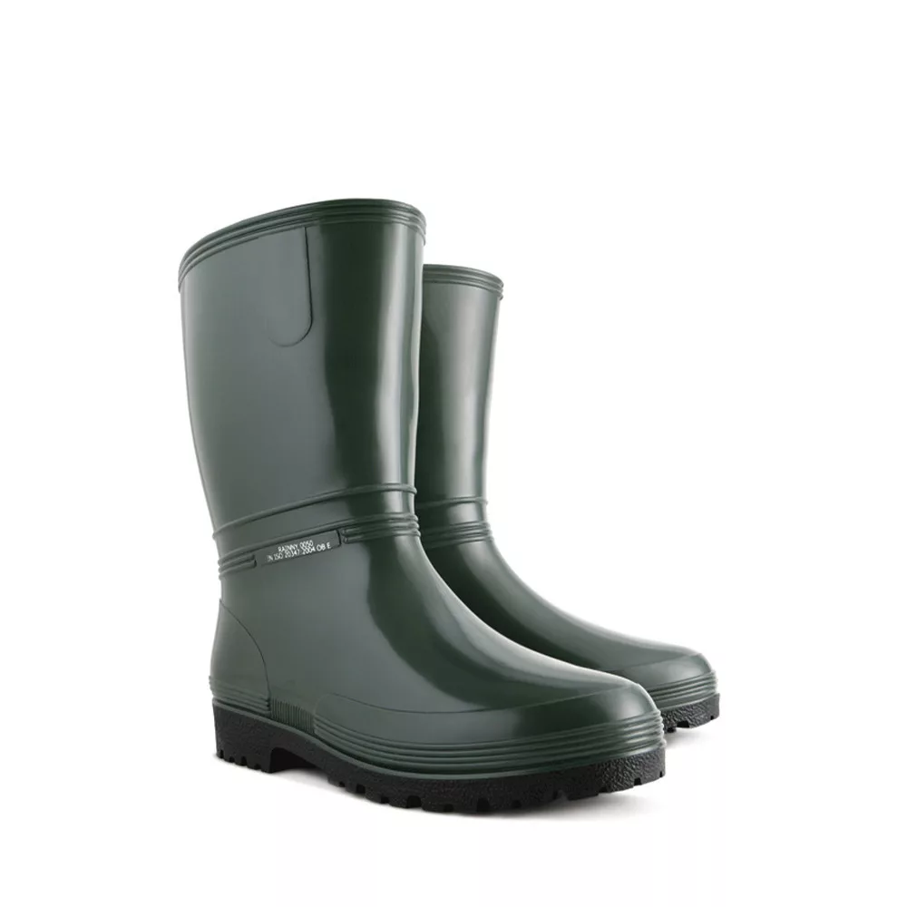 Rövid szárú PVC csizma zöld színben, kivehető filc talpbetéttel és minősített csúszásmentes talppal.