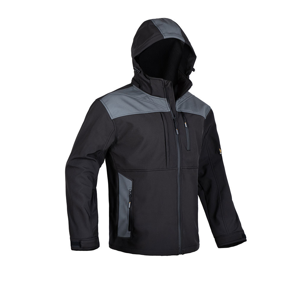 Tartós, funkcionális softshell kabát (100% poliészter) , amely stílusos megjelenést és megbízható védelmet kínál mérsékelt igénybevétel esetén — ideális kültéri munkához
