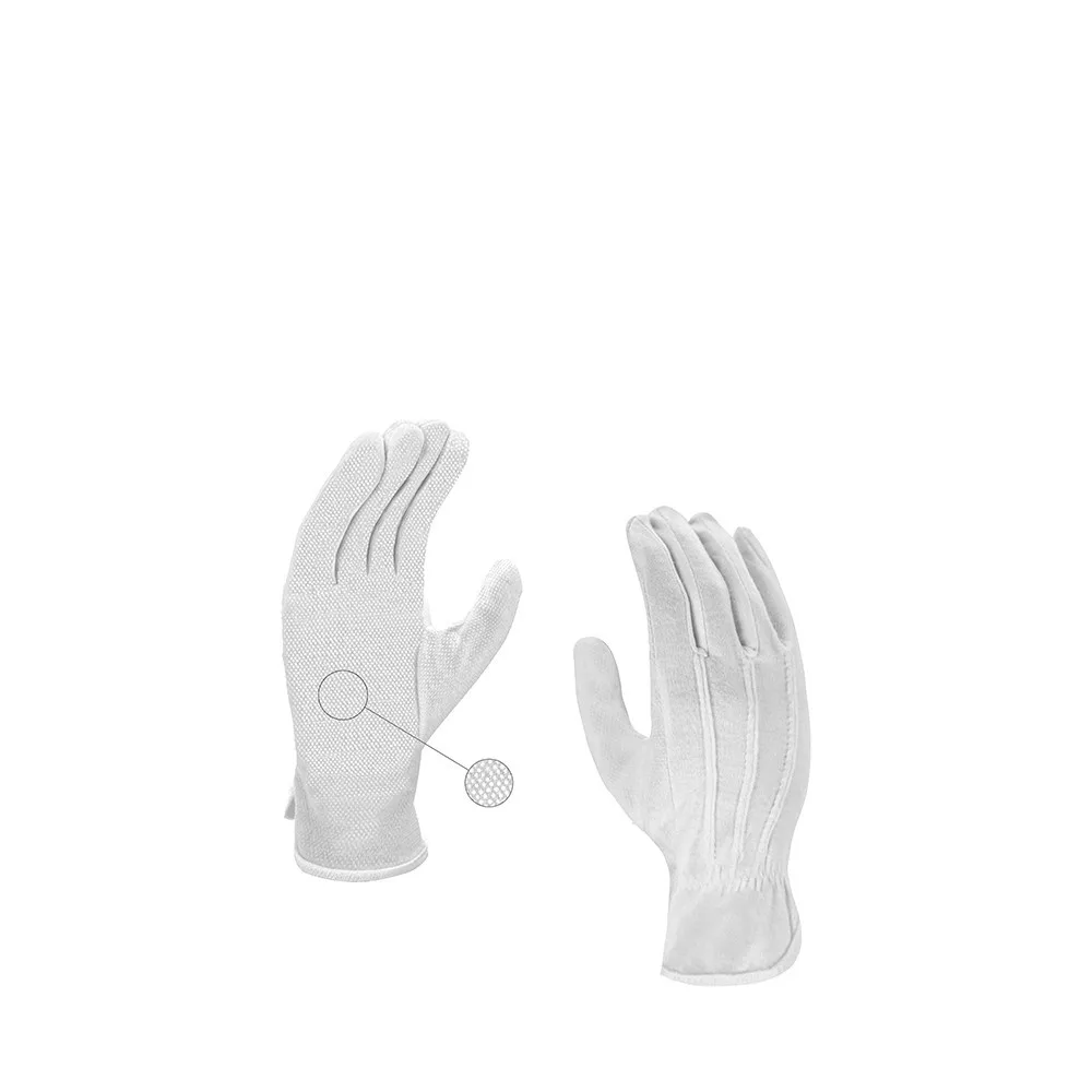 A pamut tulajdonságainak köszönhetően tökéletesen illeszkedik a kézhez, melynek köszönhetően nagyon kényelmes viselet. A tenyér részen PVC-ből készült mikropontokkal megerősítve markolat, így tökéletes olyan tevékenységekhez, ahol kézügyességre van szükség. A három varrás a felső részben és a csuklónál javítja a használat ergonómiáját.
