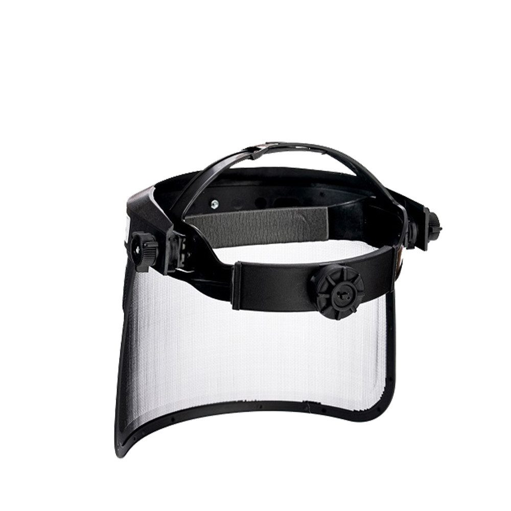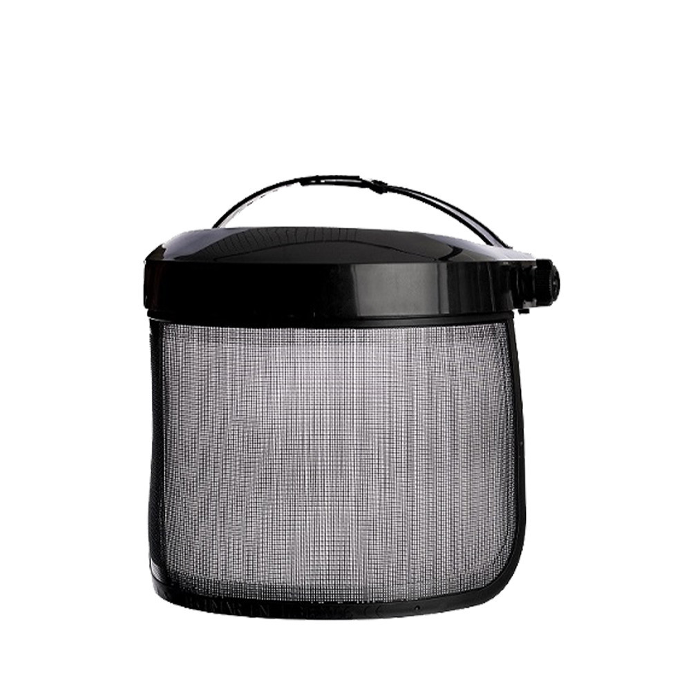 OST hálós arcvédő, 0,4 mm vastag porszórt acélhuzalból (összesen 0,8 mm vastag), 200 mm magas és 350 mm széles - fokozatmentes állítás, kuplungos mechanika - állítható távolság az arctól vízszintes síkban, így szemüveget viselők számára is kényelmes - állítható dőlésszög - közepes energiájú ütés ellen védelem (120 m/s sebességgel 0,86 g súlyú labdával tesztelve) - könnyen cserélhető háló - a burkolat súlya 313g - PN-EN 1731:2008