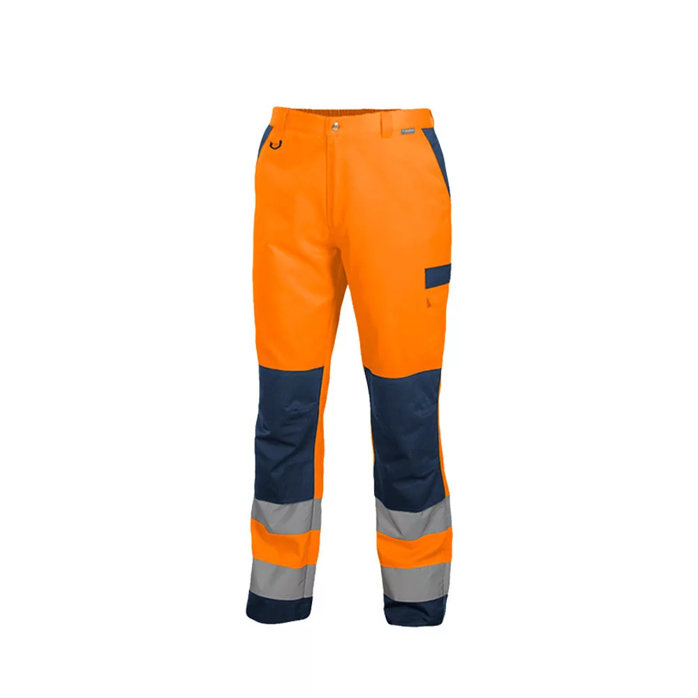 Egyenes szabás, funkcionális kialakítás. - gumírozott hátsó derékrész - "D" gyűrű a kulcsoknak - két zsebfedős rávarrt zseb - multifunkcionális oldalzseb a bal száron - zollstock számára kialakított dupla zseb - zsebfedős farzsebek - térdelőpárna számára kialakított megerősített térdzseb - tripla varrás a szárak belső felén és az ülepen - EN ISO 20471:2013 (2-es odztály)
