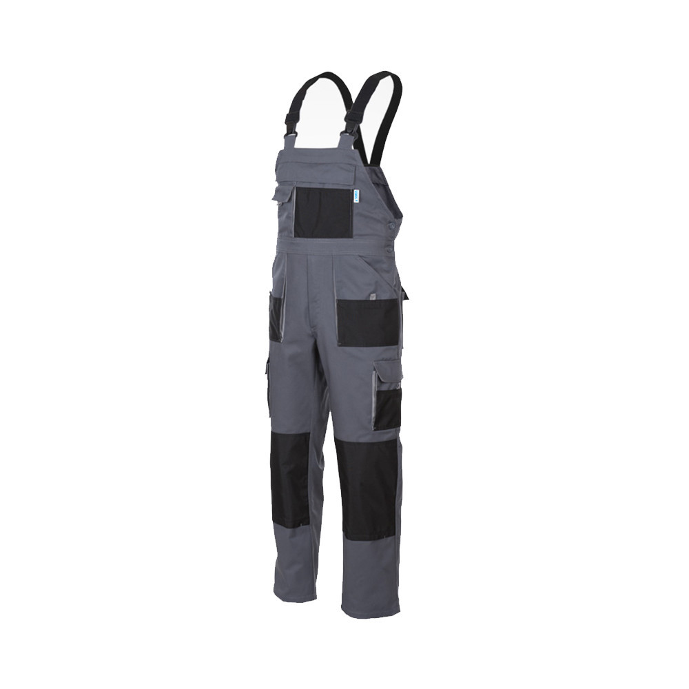 Karcsúsított szabás, rugalmas Canvas anyag, funkcionális kialakítás. - rugalmas, állítható nadrágtartó - fényvisszaverő elemek - térdrész tartós polyester anyagból készült - zsebfedős mellzseb tépőzárral - két első zseb - zollstock számára kialakított zseb - széles tépőzáras oldalzseb a bal lábszáron egy további cipzáras elemmel - telefon számára kialakított zseb - zsebfedős farzsebek - térdelőpárna számára kialakított térdzseb - az összes zseb tépőzárral zárható