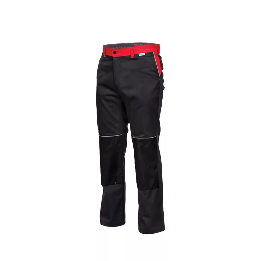 Egyenes szabás, funkcionális kialakítás. - gombos rögzítés - gumírozott hátsó derékrész - két rávarrt zseb - térdelőpárnának kialakított térdzsebek kondura erősítéssel - tripla varrás a szárak belső felén és az ülepen