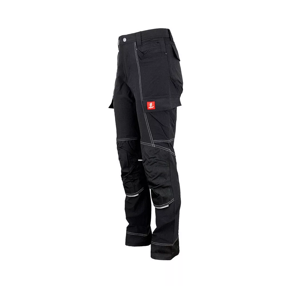 Fekete színű, strapabíró outdoor munkanadrág, amely kényelmet és funkcionalitást biztosít a mindennapi munkavégzés során. A rugalmas anyagösszetételnek köszönhetően szabad mozgást tesz lehetővé, miközben tartós és ellenálló.