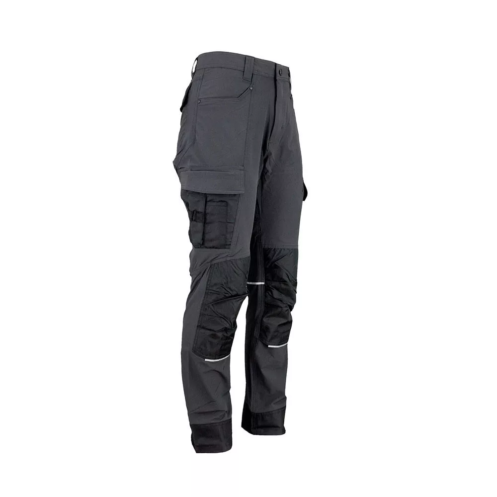 Modern, grafit színű outdoor munkanadrág, amely kényelmes és rugalmas viseletet biztosít mindennapi munkavégzéshez. A tartós, könnyű anyag és a praktikus zsebkialakítás ideális választássá teszi szerelési, ipari és általános munkákhoz.