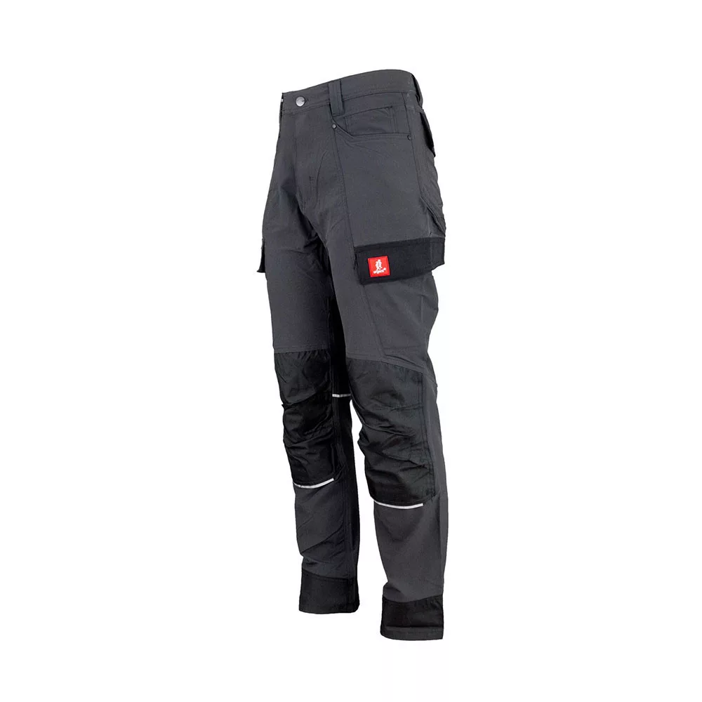 Modern, grafit színű outdoor munkanadrág, amely kényelmes és rugalmas viseletet biztosít mindennapi munkavégzéshez. A tartós, könnyű anyag és a praktikus zsebkialakítás ideális választássá teszi szerelési, ipari és általános munkákhoz.