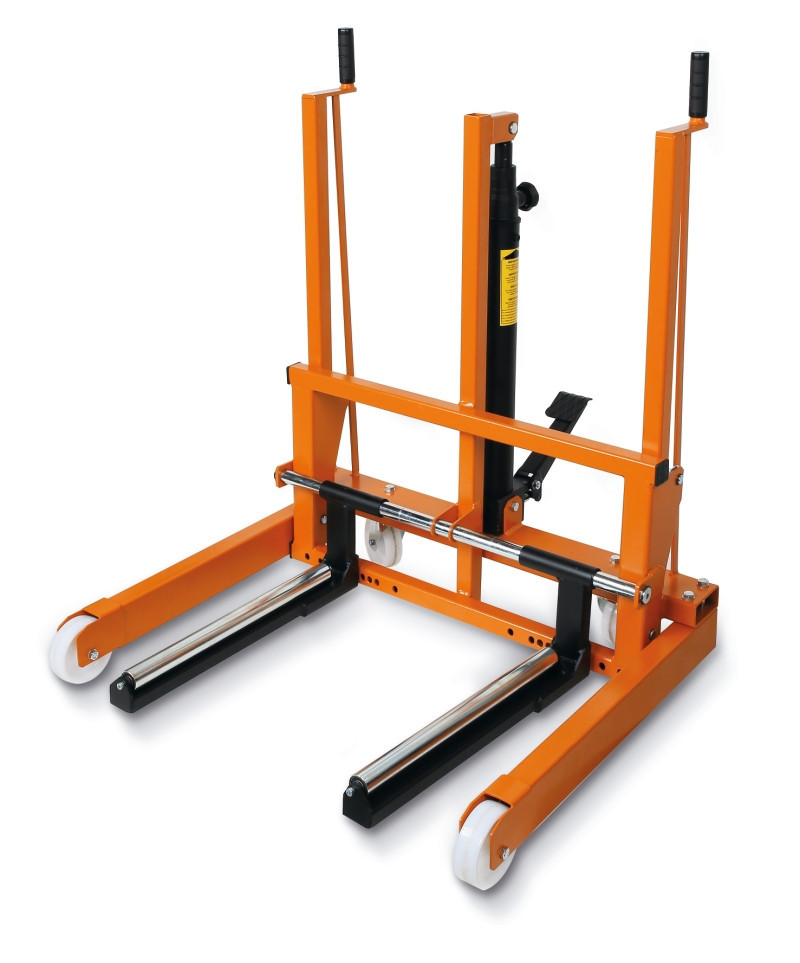 • Maximális teherbírás: 500 kg • Legkisebb magasság: 120 mm • Maximális emelési magasság: 650 mm • Görgő tengelytáv: 429÷670 mm • Hidraulikus biztosítás túlterhelés esetén • Elforduló első kerekek