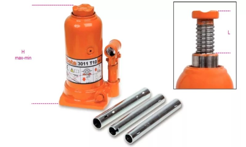 Jellemzők: • A három darabos emelőkar szűk helyen való munkavégzést is lehetővé tesz • Beépített biztonsági szelep a túlterhelés megakadályozására • Emelődugattyú hosszabbító csavarral az emelési pozíció beállításához