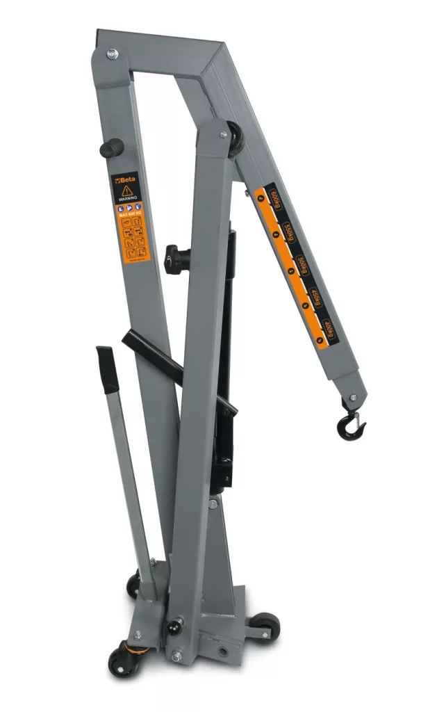 A kompakt és praktikus hidraulikus daru ideális megoldás szűk helyen és kisebb terhekkel való munkavégzéshez. A karcsú, de robusztus szerkezet, a behajtható karok és a 200°-ban elforgatható szabályozókar még szűk helyeken könnyű kezelhetőséget biztosít. Kisebb terhek emelésére és mozgatására tökéletes. Az 5 pozícióba állítható teherkar maximális magassága 2300 mm, hatósugara 960 mm és 1350 mm között változik. Optimális munkavégzéshez válassza a hatékony és sokoldalú emelőt.