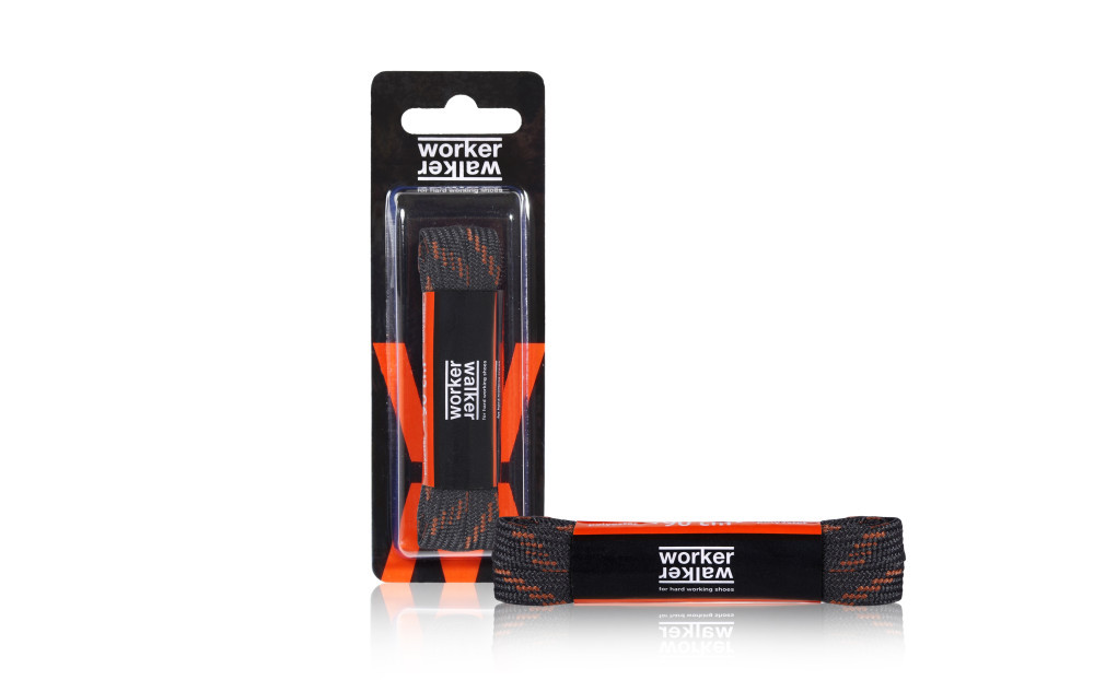 Lapított, poliészter cipőfűző. 10 pár / csomag, a csomagolás perforált, kínáló dobozzá alakítható.