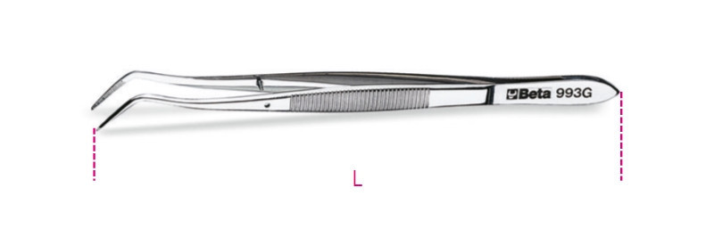 993G Hajlított csapos csipesz sarkított, lekerekített, fogazott heggyel, rozsdamentes acélból, polírozott
