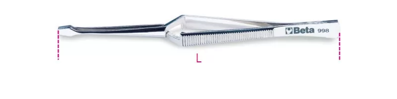 998 150 Önzáró csipesz, fogazott, rozsdamentes acélból, polírozott