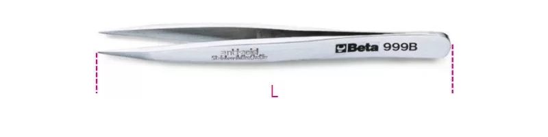 999B Egyenes csipesz, nem mágneses, saválló, keskeny hegyű, rozsdamentes acélból, polírozott