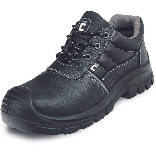 • biztonsági félcipő kompozit lábujjvédővel és átszúrás ellen védő köztalppal • olaj- és üzemanyagálló PU/PU talp, bőr felsőrész • fémmentes kivitel