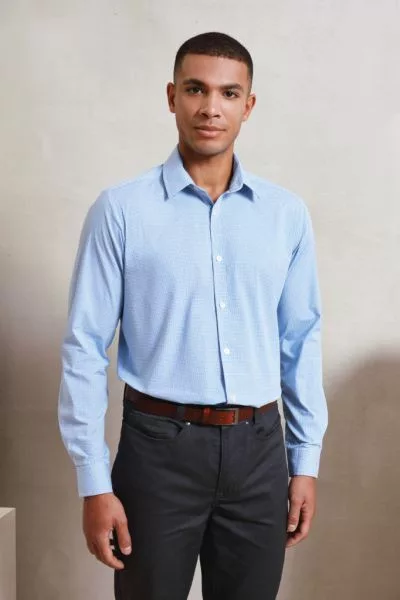 utt_pr220bl-wh-xs Premier PR220 MEN'S LONG SLEEVE GINGHAM COTTON MICROCHECK SHIRT XS