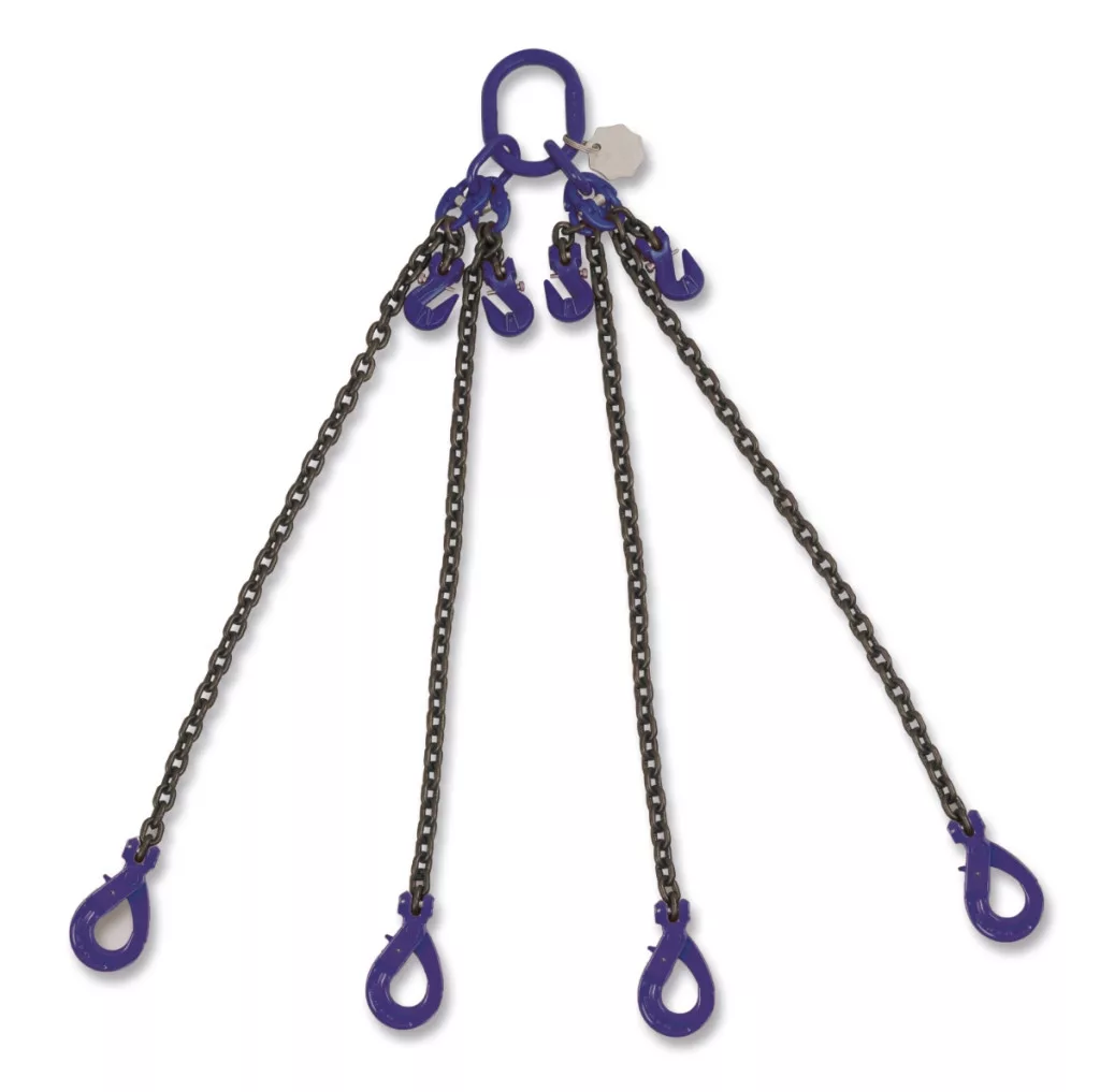Emelőlánc, 4 karos, önzáró, kengyeles horgokkal 10. biztonsági fok
