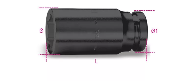 730L 55 Hatszögű gépi dugókulcs, 1,1/2"-os négyszögletes csatlakozó, hosszú, foszfátozott