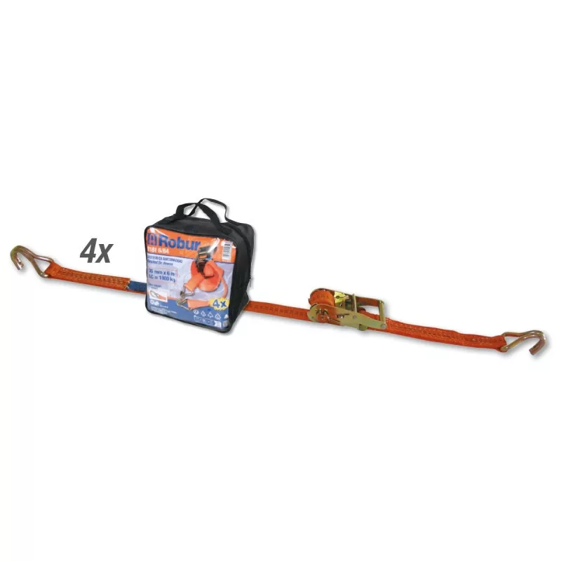 4 darab 8181 racsnis rögzítőheveder táskában, 6 m nagy szakítószilárdságú poliészter szalag, egyhorgos