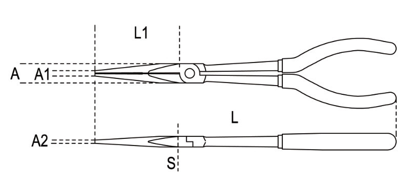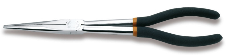 1009L/A Extra hosszú, egyenes, félkerekcsőrű műszerészfogó, különleges munkákhoz PVC-bevonattal