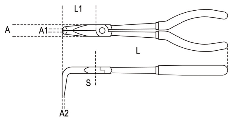 1009L/C Extra hosszú 90°-os hajlított, félkerekcsőrű műszerészfogó, különleges munkákhoz PVC-bevonattal