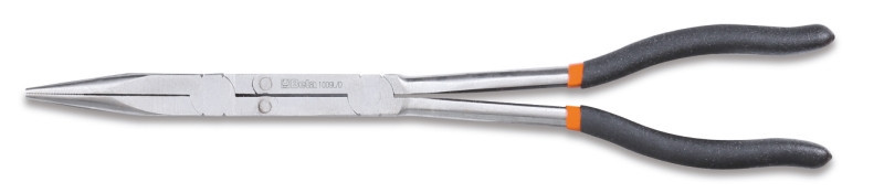 1009L/D Extrahosszú, félkerekcsőrű recézett műszerészfogó kettős csuklóval kétrétegű, csúszásgátló PVC bevonatú nyéllel