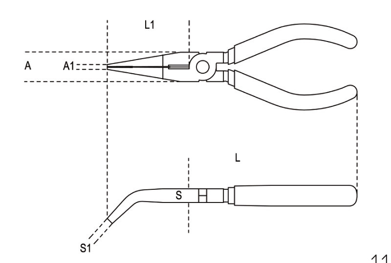1164BM 160 Hajlított extra hosszú laposfogó, krómozott, gumibetétes műanyag szárral