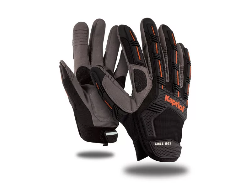 A KAPRIOL márka a professzionális igényeket kielégítő védőfelszerelések széles választékát kínálja.Nehéz munkakesztyű.Teszt: 3131XP - a P jelölés azokat a kesztyűket jelöli, amelyek kézfeje az ütésvizsgálaton megfeleltek.Tenyér: mikroszálas, párnázott SBR betétekkel.Kézfej: Szövet ütésálló gumibetétekkel.