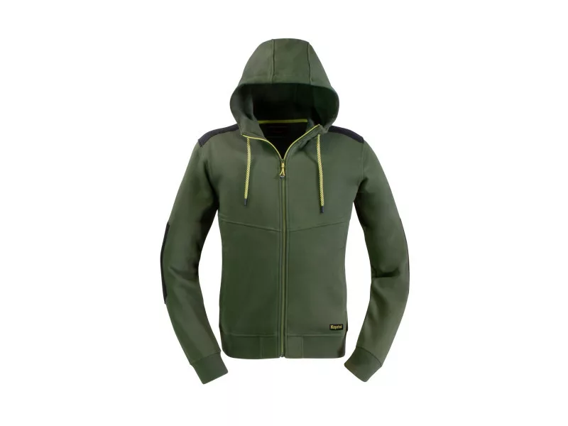 A KAPRIOL márka a professzionális igényeket kielégítő ruházati kiegészítők széles választékát kínálja.Pulóver, állítható kapucnival, húzózsinórral és párnázott megerősítésekkel a legnagyobb igénybevételnek kitett területeken, például a vállakon és a karon. A kapucnis pulóver meleg és kényelmes anyagból készült, és kényelmes derékzsebekkel, valamint gumírozott a csuklónál és a pulóver alsó részén.Műszaki adatok:- állítható kapucni húzózsinórral- megerősítések a vállakon és az ujjakon- meleg és kényelmes anyag - derékzsebek- gumis anyag a pulóver alsó részén és az ujjak végénAnyag:Fő anyag: 82% pamut / 18% poliészter - 280 g/m2Megerősítések: 100% Nylon poliészter