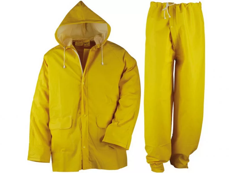 A KAPRIOL márka a professzionális igényeket kielégítő ruházati kiegészítők széles választékát kínálja.- Dzseki és nadrág erős vízálló anyagból, bő szabás- A kapucni összecsukható a cipzáros zsebbel- Nagy derékzsebbel- Ruhára felvéve ajánlott a használata- 65% pvc 35% poliészter