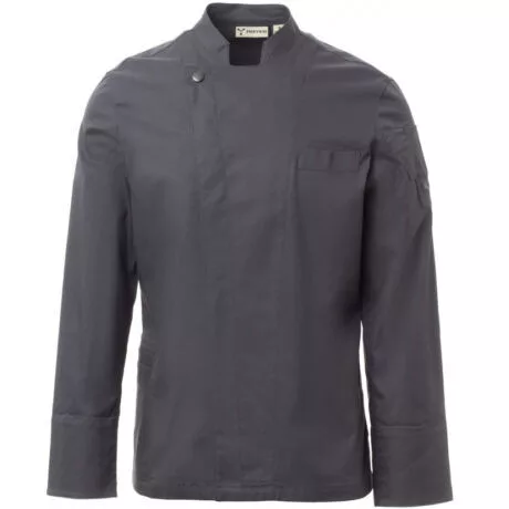 <ul><li>Szakácskabát mandarin gallérral, pamut twill és Lycra® T400® anyagból, kiváló rugalmas és légáteresztő tulajdonságokkal. Dupla soros záródás pattintható gombokkal. Hosszú ujjú felhajtható mandzsetta, félkör alakú hálós rész a karnyílás alatt, a légáteresztés érdekében. Ikonikus formájú folt a bal vállon, tónusos hímzéssel, tollzsebbel kiegészítve. Mellkaszseb és praktikus okostelefon zseb a derekán. Függőleges hasítékok a hát alsó részén a mozgás megkönnyítése érdekében.</li><li>58% pamut, 42% elastomultiester, 160 g/m<sup>2</sup></li><li>Méret: S-5XL</li></ul>