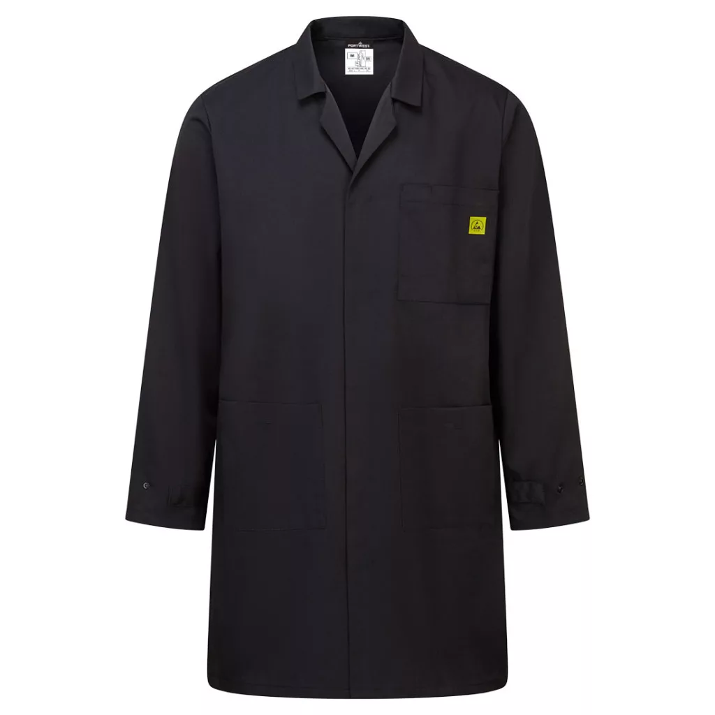 Antisztatikus ESD köpeny PW_AS10BKRXXXL Fekete - XXXL méret